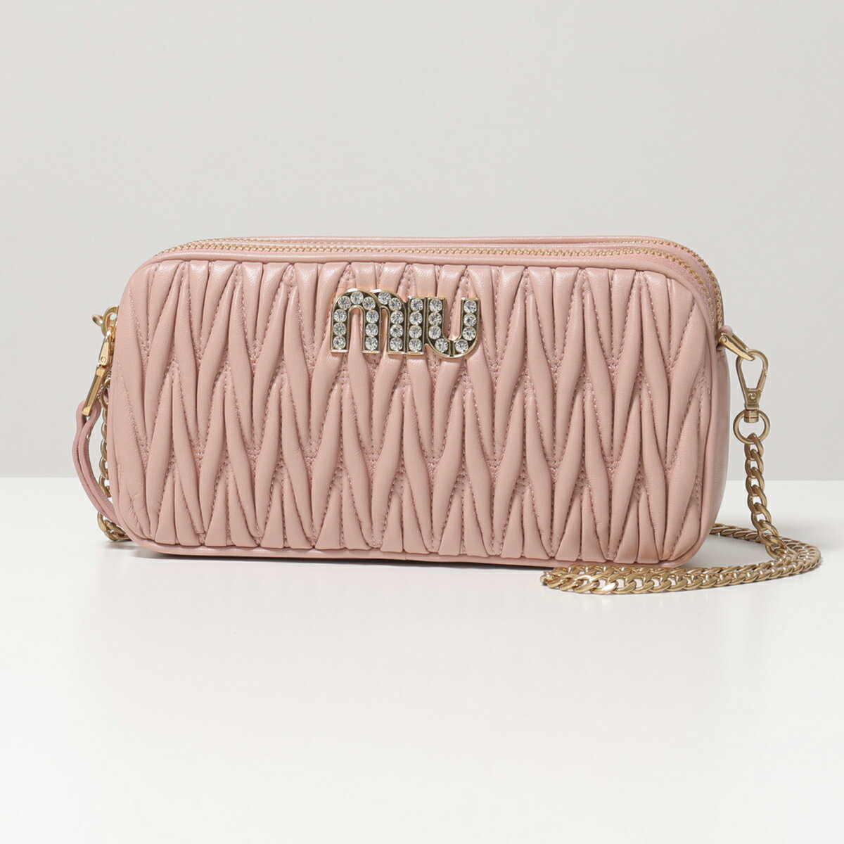 MIUMIU ミュウミュウ 5DH045 2BSQ 615 マテラッセ レザー クリスタル装飾 チェーン ショルダーバッグ ポシェット 小銭入れ付き ORCHIDEA 鞄 レディース