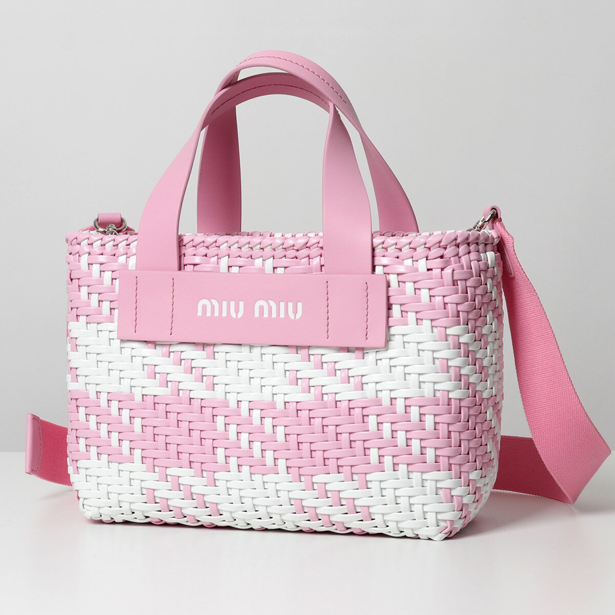 【スーパーSALE2000円OFF】MIUMIU ミュウミュウ かごバッグ カバン 5BA176 V ORH 2C9H 花柄 ストロー ハンドバッグ 2WAY ショルダーバッグ レザー ロゴ 【オススメ商品】【新着商品】