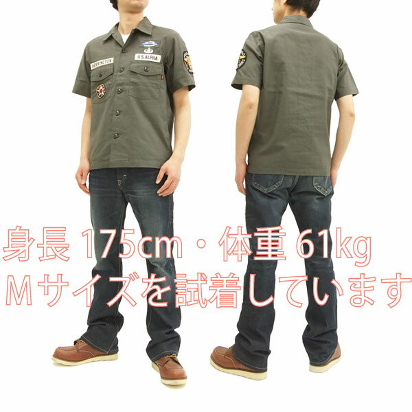 Product Description in English. Alpha Industries Men's Military Shirt With Patches Short Sleeve Utility Shirt TS5049 This shirt is produced by EDWIN for the Japanese market under a license from the American Alpha Industries, Also inspired by the the American vintage military design, New original designs are made for the modern age. Gender : Men. Fit : Boxy-Fit for the vintage feel and look. The shirt has a modern fit which is shorter length. Our model wears a size Japan M(US S) and is 175cm/5'9″tall, 61kg/134lbs and 91cm/36" chest. This product is Japan size (Asian size), which is about 1 size smaller than USA and EU standard size. ・Japan M ( US S / UK 36 ) ・Japan L ( US M / UK 38 ) ・Japan XL ( US L / UK 40 ) The following provides approximate garment measurements. (Not human body measurements). Please compare actual garment measurements of our product to another you may own. ・Japan M (US S)__Width: 20.9"__Length: 26.8"__Sleeve: 17.7"__Shoulder: 17.3" ・Japan L (US M)__Width: 21.7"__Length: 28.3"__Sleeve: 18.5"__Shoulder: 18.1" ・Japan XL (US L)__Width: 22.8"__Length: 29.1"__Sleeve: 19.3"__Shoulder: 18.9" Width is half chest Lay the clothing flat and measure 3 cm under the armhole. Measure from side to side. Please note that : This product is originally intended to wear as a Boxy-Fit. If you prefer not too short length, please choose one size bigger. For more information, please refer to HOW TO MEASURE THE CLOTHING shown in the image. If you are unsure of the size to order, we will assist you. Please contact us by e-mail ( pine-avenue@spa.nifty.com ) with the following information : Height, waist circumference measure, chest circumference measure, body weight, (and type of clothing to be worn beneath the jacket most of the time), as well as the type of fit you prefer : Trim, roomy or oversized. Made in China. Brand-new, new condition with tags. *All measurements are taken with the garment flat on the ground. *Sleeve length is taken from the center back of the neck. *Please understand that measurements may vary somewhat. *Note that actual color may be slightly different from one in the photo. Fabric Type : 100% cotton back satin. Heavyweigt one-washed, pre-washed, preshrink, non-stretch, tightly woven cotton back satin with a slubby and rough-hewn texture and rugged appearance and uneven surface from horizontal lines on the face of the fabric. It is high density and extremely durable. It combines the toughness and the natural softness for comfort. This item is dyed and washed for fade and the fashionable vintage feel and look. The more you wear, the more fabric will fade beautifully and continue to get softer and cozier. Lining : Unlined, Suitable for summer seasons. Placket type : 6 buttons on front opening. Full-button closure (Front placket, Front button closure). The buttons are vintage-style 4-hole urea buttons with horizontal button holes. Storage : Classically-styled double chest flap pockets with button closure. The Left side pocket flap has a pencil slot. The upper pocket corners are bar tacked for extra strength. Collar Type : Camp collar shirt / Notched collar shirt. / Open collar shirt. Back of the shirt : No pleats, No yoke. Bottom hem type : Straight Hem (Square cut bottom Hem). Style : Casual Fashion / Military style / This shirt is produced by EDWIN for the Japanese market under a license from the American Alpha Industries, Also inspired by the the American vintage military design, New original designs are made for the modern age. Pattern Type : Military patches on both side chest and left arm. Sleeve Style : Set-in sleeves. Sleeve Length : Short. Alpha Industries is an American clothing manufacturer founded in 1959 in Knoxville, Tennessee. Initially as a contractor to the United States military, the company grew into an international commercial seller of American military style and fashion apparel. Popular models include the MA-1 and CWU-45/P pilot jackets. This T-Shirt is produced by EDWIN for the Japanese market under a license from the American Alpha Industries, Also inspired by the the American vintage military design, New original designs are made for the modern age. Here is one piece from the Alpha Industries brand : A short-sleeved shirt with custom military patches for men. This style combines the original features of classic military shirts with styling and tailoring from Alpha Industries collection. Model name : Alpha Industries TS5049 Men's Fatigues Utility Shirt / Mens Utility Shirt with Patches / Uniquely Designed and Inspired by the original OG-107 Utility Uniform shirt (the basic work utility uniform (fatigues of all branches of the United States Armed Forces) and Vietnam War 1960s-1970s Army Shirt (US Military Army Vietnam Shirt ) / Heavyweigt Cotton Back Satin Short Sleeve Shirt for Men / UTILITY SHIRT SHORT SLEEVE. alpha-industries-rodeo-japan * This item has been specially treated to produce a vintage-like effect. Note that this may cause some of the threads in the base material and embroidery to appear loose or split in parts. Note that this is entirely consistent with the vintage effect and is intentional. * Note that the embroidered accent is extremely delicate, so avoid striking it against surfaces. alpha-industries-rodeo-japanアルファ TS5049 ミリタリーシャツ Alpha メンズ ワッペン付き 半袖シャツ ブランド アルファ インダストリーズアルファインダストリーズ ALPHA INDUSTRIES INC. 企画・生産(株)エドウィン 商品名 Alpha Industries TS5049 Men's Fatigues Utility Shirt / Mens Utility Shirt with Patches / Uniquely Designed and Inspired by the original OG-107 Utility Uniform shirt (the basic work utility uniform (fatigues of all branches of the United States Armed Forces) and Vietnam War 1960s-1970s Army Shirt (US Military Army Vietnam Shirt ) / Heavyweigt Cotton Back Satin Short Sleeve Shirt for Men / UTILITY SHIRT SHORT SLEEVE / アルファインダストリーズ ユーティリ