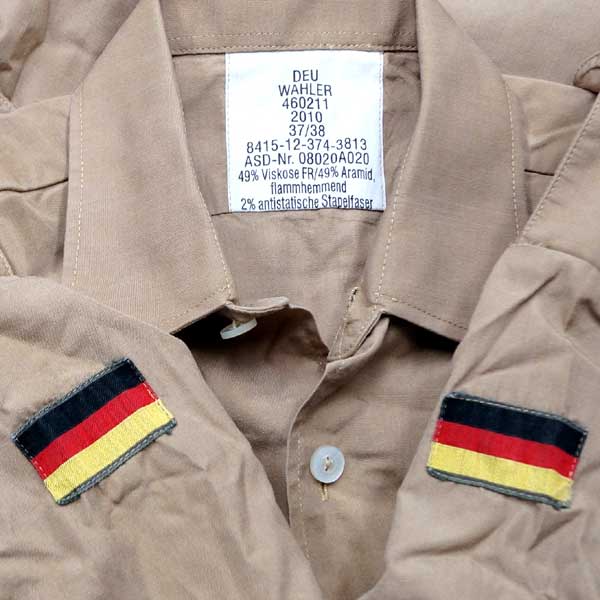 商品詳細 実物 ドイツ軍 アラミド耐熱 デッキシャツ コヨーテ!! 高い耐熱性と難燃性のアラミド繊維使用で、軽くて強く、着心地の良い素材。