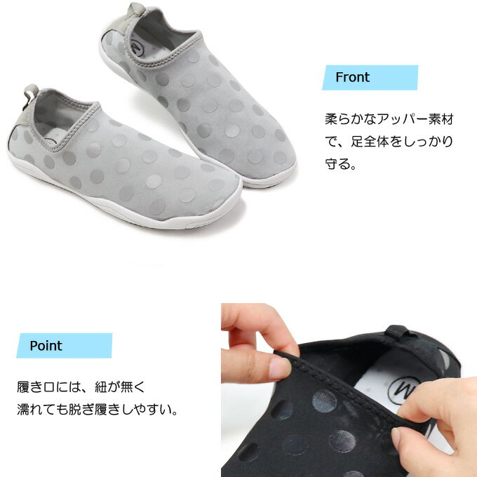 ▼ メール便・定形外郵便のご注意 ▼ 必ずご確認ください 商品名 レディース ウォーターサンダル マリンシューズ アクアシューズ スリッポン ドット 迷彩 おしゃれ Gloria カジュアル アウトドア レジャー 軽量 シュノーケリング スノーケリングシューズ 靴 箱なし 商品特徴 伸縮素材で作られているので、脱げにくくなっています。