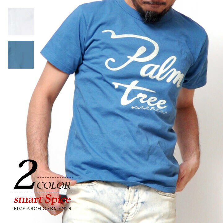 Tシャツ メンズ 半袖 ホワイト ブルー 厚手 フロントロゴ S-XL LL 2L 人気 アメカジ スマートスパイス スマスパ 0163