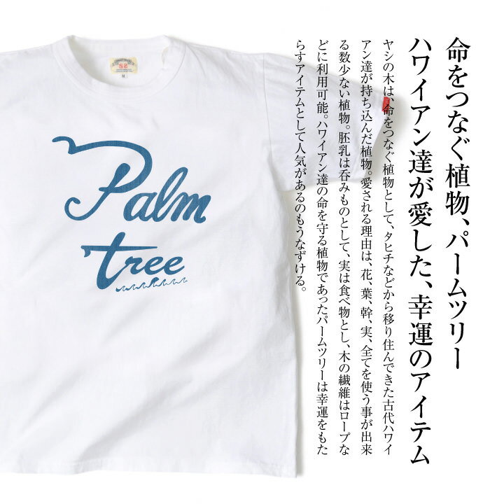 USコットンと国産縫製、こだわりのTシャツ USコットンと国産縫製、こだわりのTシャツ ヤシの木は、命をつなぐ植物として、タヒチなどから移り住んできた古代ハワイアン達が持ち込んだ植物。