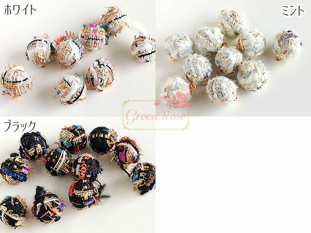 金属ボールチャーム ツイード調 全7タイプ 10個 /ファブリック/冬/秋/ピアス/イヤリング/アクセサリー/パーツ/材料/J6-3790